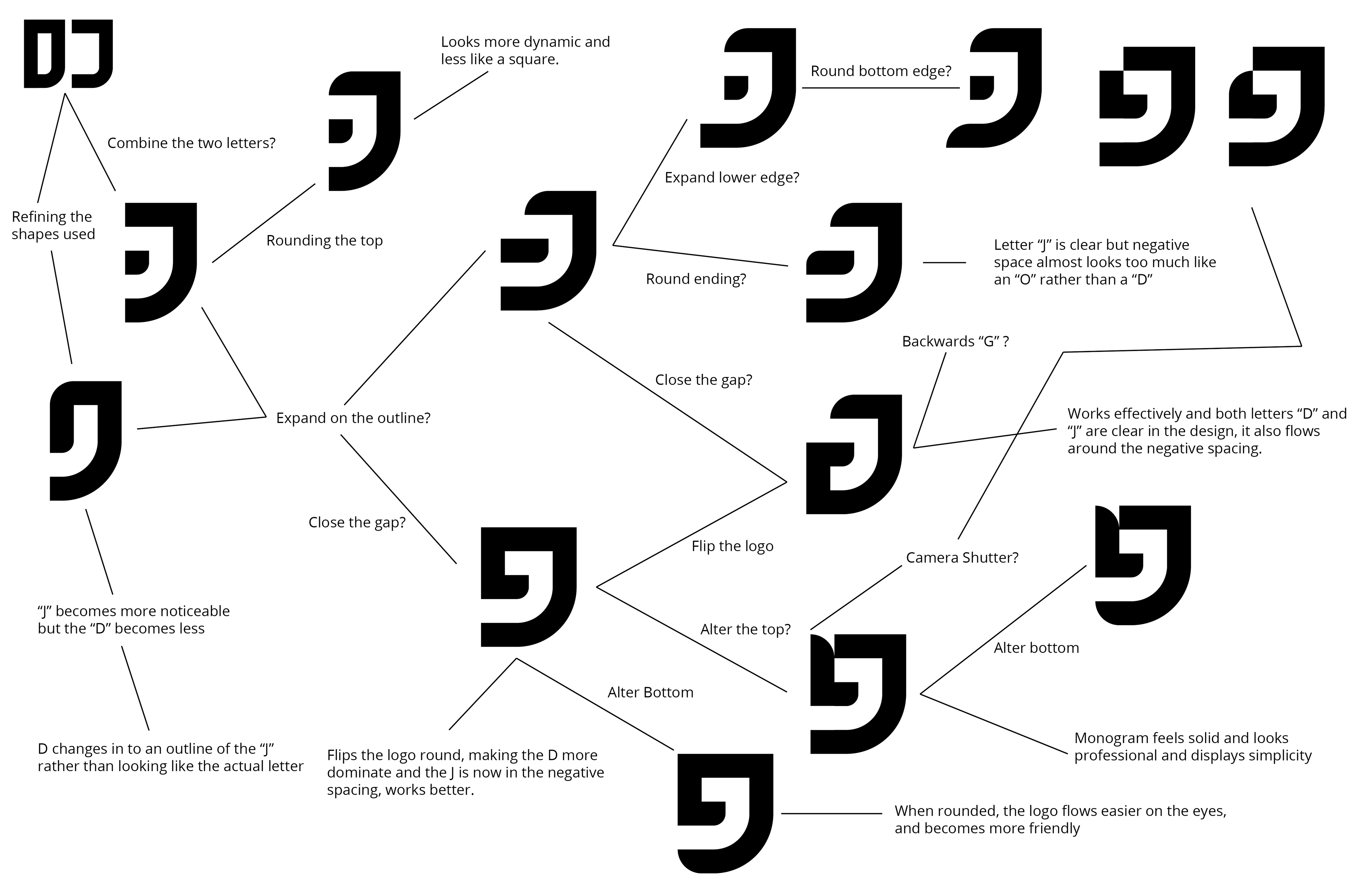 To create an array of branding for Douglas Johnstone, an aspiring photographer. Starting by creating a logo that reflects both his personality and his work, which should be in the form of a monogram/lettermark.